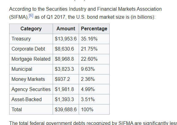 The US government, in comparison, accounts for a lower share of the US bond market.