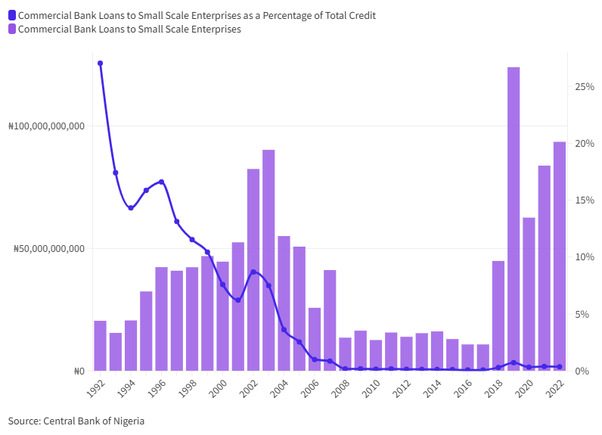 Credit is the lifeblood of any economy. For better (or worse), Nigeria’s small-scale enterprises are our primary employers. Yet, they have struggled to access credit despite ever larger amounts of cash flowing off the central bank’s printing press into the money markets. Small-scale entrepreneurs have had to endure rising inflation and hiked interest rates.