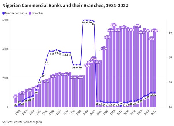 It’s hard to argue that the post-04 banking consolidation hasn’t been good for consumers. But I wonder if the post-2014 rise in the number of banks has anything to do with the CBN’s monetary expansion.